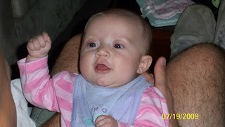 Today, I went to work to see my co-workers and to bring Lillian to visit. She had so much fun. She just smiled and giggled at everyone. She LOVES the attention! She is definitely going to be a princess!! Then this evening, we went to our nephew Curt's baseball game. John was so hard on Curt, definitely gave me a glimpse into the future if Lily decides to play sports.......yes, cheerleading is a sport!!!!!!